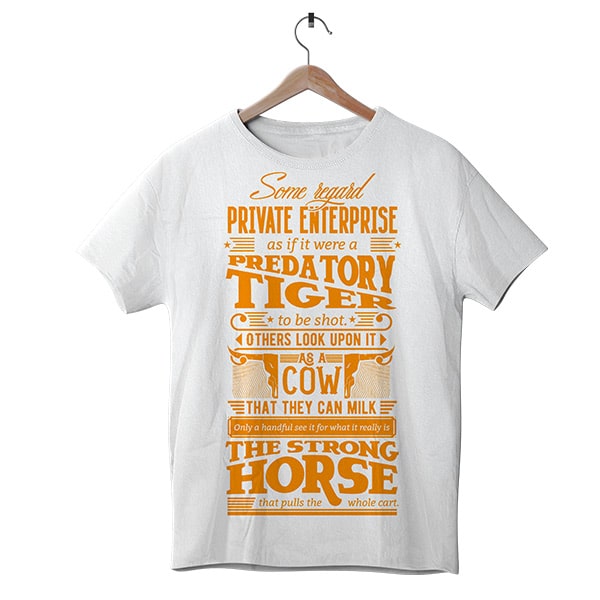 “Some regard private enterprise as if it were a predatory tiger to be shot. Others look upon it as a cow that they can milk. Only a handful see it for what it really is–the strong horse that pulls the whole cart.”