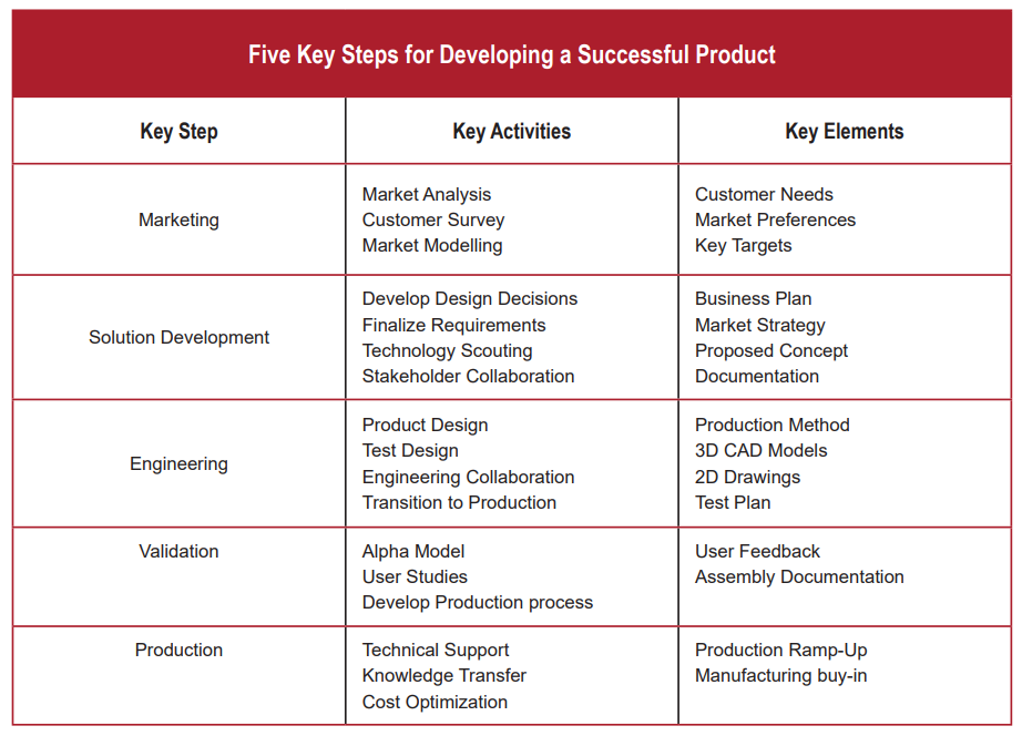 Figure 2. Five Key Steps for Developing a Successful Product (source – www.boston-engineering.com/wp-content)