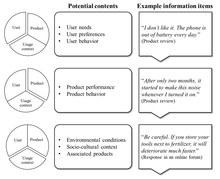 The usage context encompasses all conditions under which a product operates. These conditions influence user behavior, product performance, and user preferences. Because context varies widely, capturing it accurately is essential for meaningful analysis.